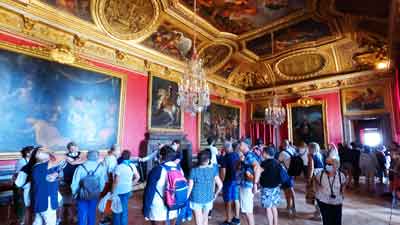 Головна краса, звісно, у Шато: тут кожен сантиметр поверхні — від підлоги до стелі — прикрашений картинами, різьбленням, венеціанським склом, фресками, позолотою та іншими атрибутами багатства. Усього налічується 3500 ізольованих один від одного приміщень. Не дивуйтеся дивним назв залів і салонів: їх іменували на честь грецьких богів. Зрозуміло, назва тронної зали самого Людовіка – Аполлон, бог сонця.